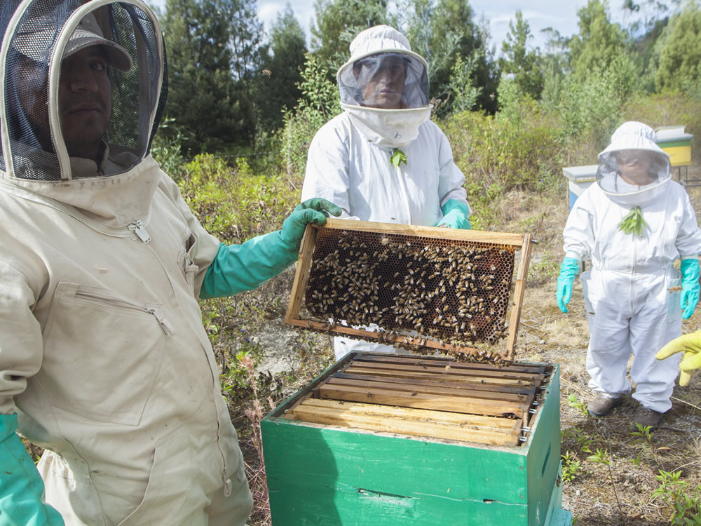 En conjunto con la comunidad hemos emprendido un proyecto apícola que contribuye además con la reproducción de las plantas gracias a la función polinizadora de estas especies.